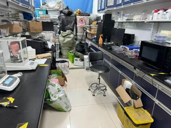 5.部分实验室整体环境杂乱,卫生较差,台面的卫生管理未责任到人。